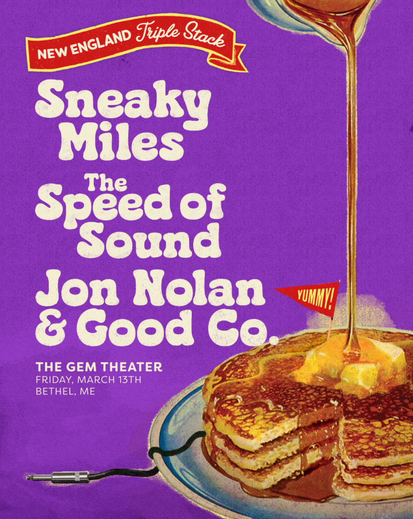 Join BAAM at The Gem in welcoming the New England Triple Stack to Bethel featuring The Speed of Sound, Sneaky Miles, and Jon Nolan & Good Co. on Friday, March 13th.
